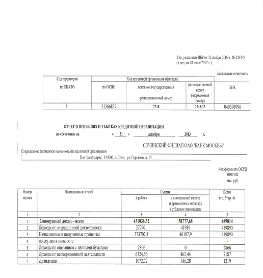 ОАО «БАНК МОСКВЫ» сокращаются на 1,7% к 2012 году и на 4,65% к 2013 году. При