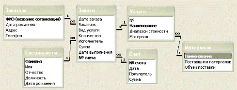 «Заказы» и «Услуги». Связь «один ко многим» характеризуется тем, что каждому