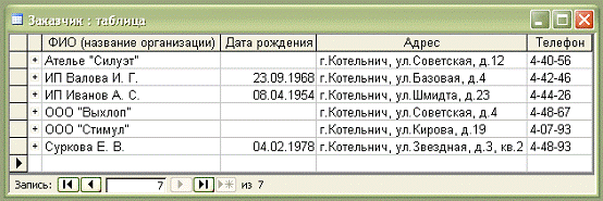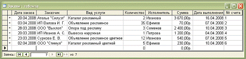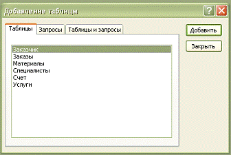 специалистами (запрос на объединение таблиц):Заказы.Исполнитель, Заказы.[Вид