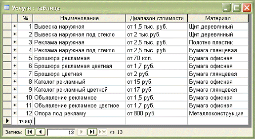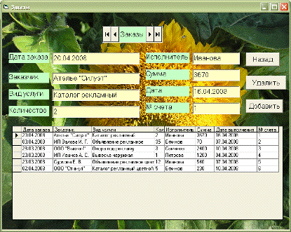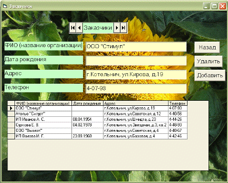 Удаление и добавление записей в базу данных «Рекламное агентство