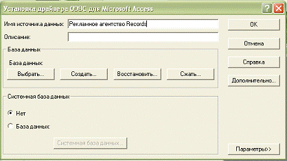 Открытие базы данных «Рекламное агентство» при помощи средства управления