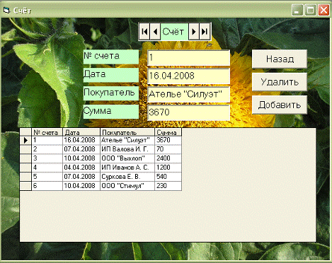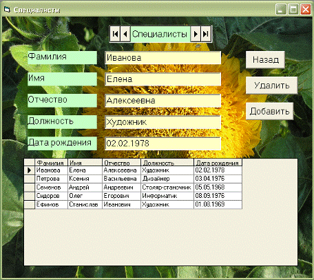 2002-2003, приложение к базе данных в Microsoft Visual Basic 6.0.