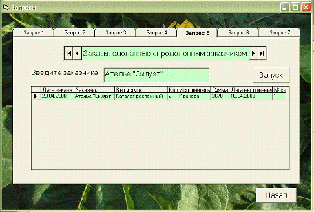 отбирающего заказы, сделанные определенным заказчиком:Sub Command2_Click()strZ