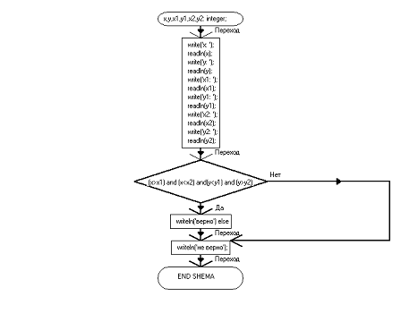 y2. Проверить истинность высказывания: «Точка с координатами (x,y) лежит внутри
