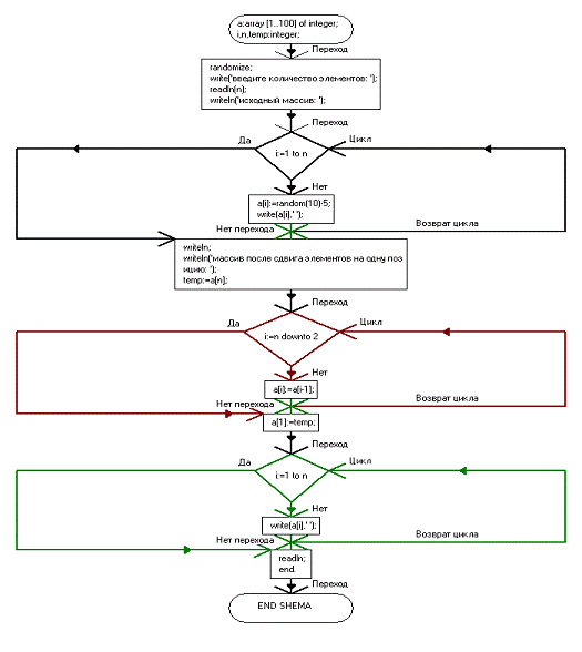 элементов на одну позицию: ');:=a[n];i:=n downto 2 do[i]:=a[i-1];[1]:=temp;i:=1
