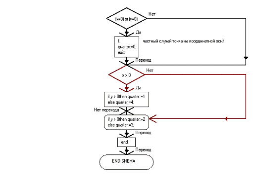 координатной оси}:=0;;;x > 0 theny > 0 then quarter:=1quarter:=4;y
