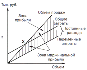 безубыточности, маржинального дохода;