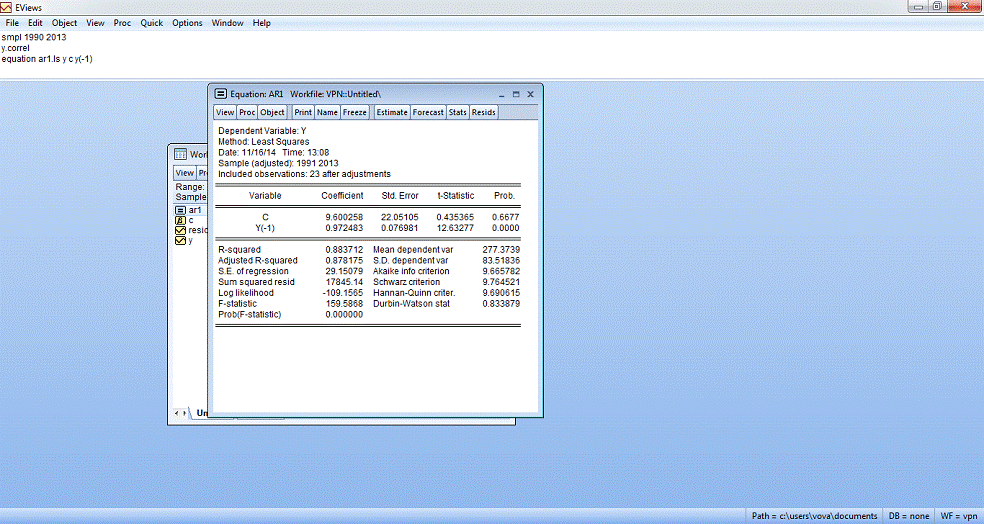 - эконометрический пакет EViews Enterprise Edition 5 для построения АР модели;