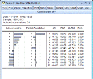 CrossCorrelXY (Y, Y, MAX_LAG);correl;
