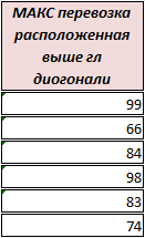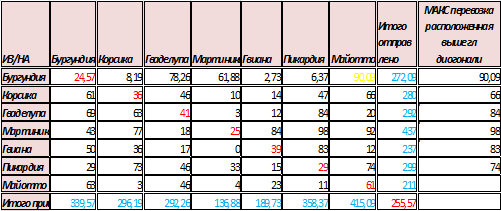 диагонали матрицы. Все размеры отправления груза на соответствующий регион