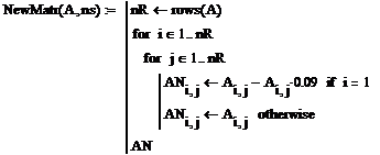 уменьшающая элементы указанной строки на 9%