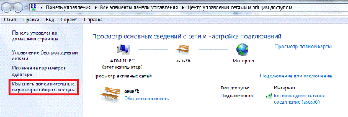 В открывшемся окне Центр управления сетями и общим доступом посмотрите,