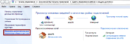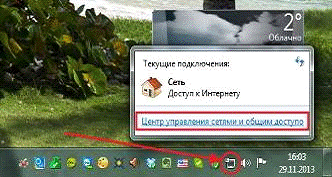 "Центр управления сетями и общим доступом" или нажмите на кнопке