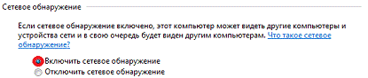 включено ли Сетевое обнаружение, если выключено - включите. (рис. 16).