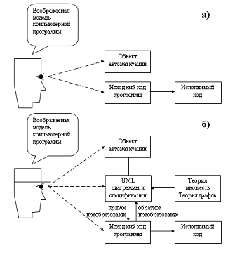 UML. На обеих схемах слева показаны программисты и воображаемые ими модели