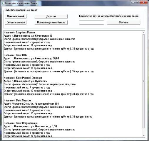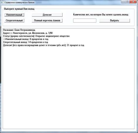 LB_ADDSTRING, 0, (LPARAM)(TCHAR*)string );(string, "Сберегательный вклад: