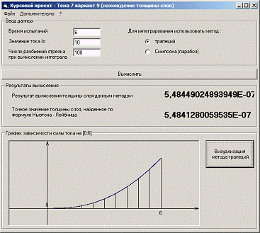 метода вычисления: метод трапеций и метод Симпсона (метод парабол).