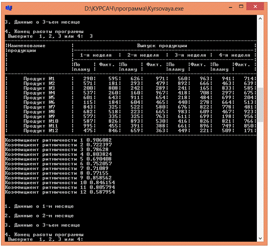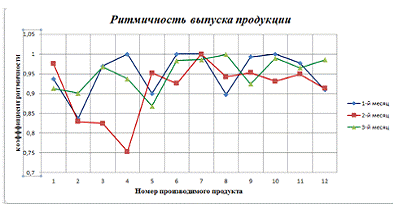 На рисунке 6 также вычислены коэффициенты ритмичности для каждого месяца,