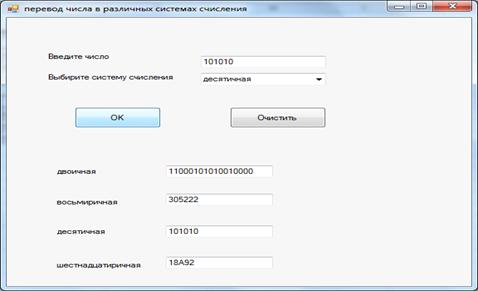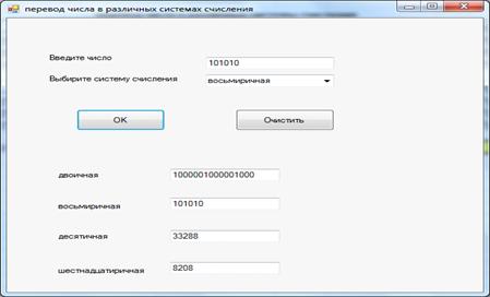 Программная реализация механизма перевода чисел в различные системы счисления