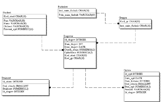 факультетах, группах, договорах, а также информация об оплате и стоимости