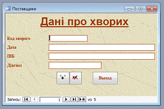 на файлі «ReportsInfo.mdb» у результаті відкриється вікно з головною формою.