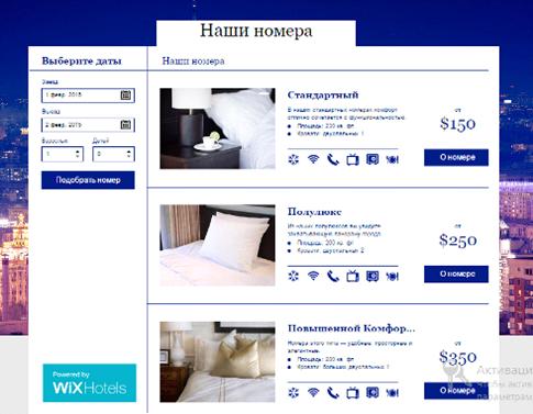 выводится окно выбора номера для заселения (рисунок 3.4)