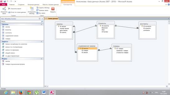 Создадим пять таблиц: Клиенты, Контакты, Товары,