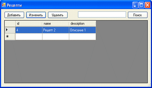 {cl = new recipt();.Text = "Рецепты";.ShowDialog();