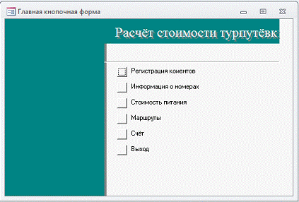 управляется кнопочной формой, активизирующейся при открытии базы данных.