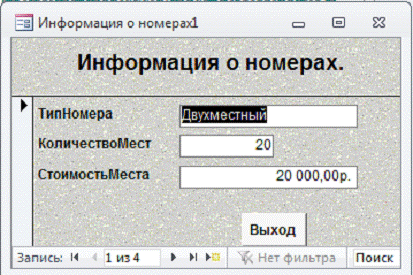 форму для просмотров данных, которую можно изменять. Кнопка «Выход» позволяет