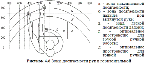 рабочего места, ограниченного дугами, описываемыми предплечьями при движении в