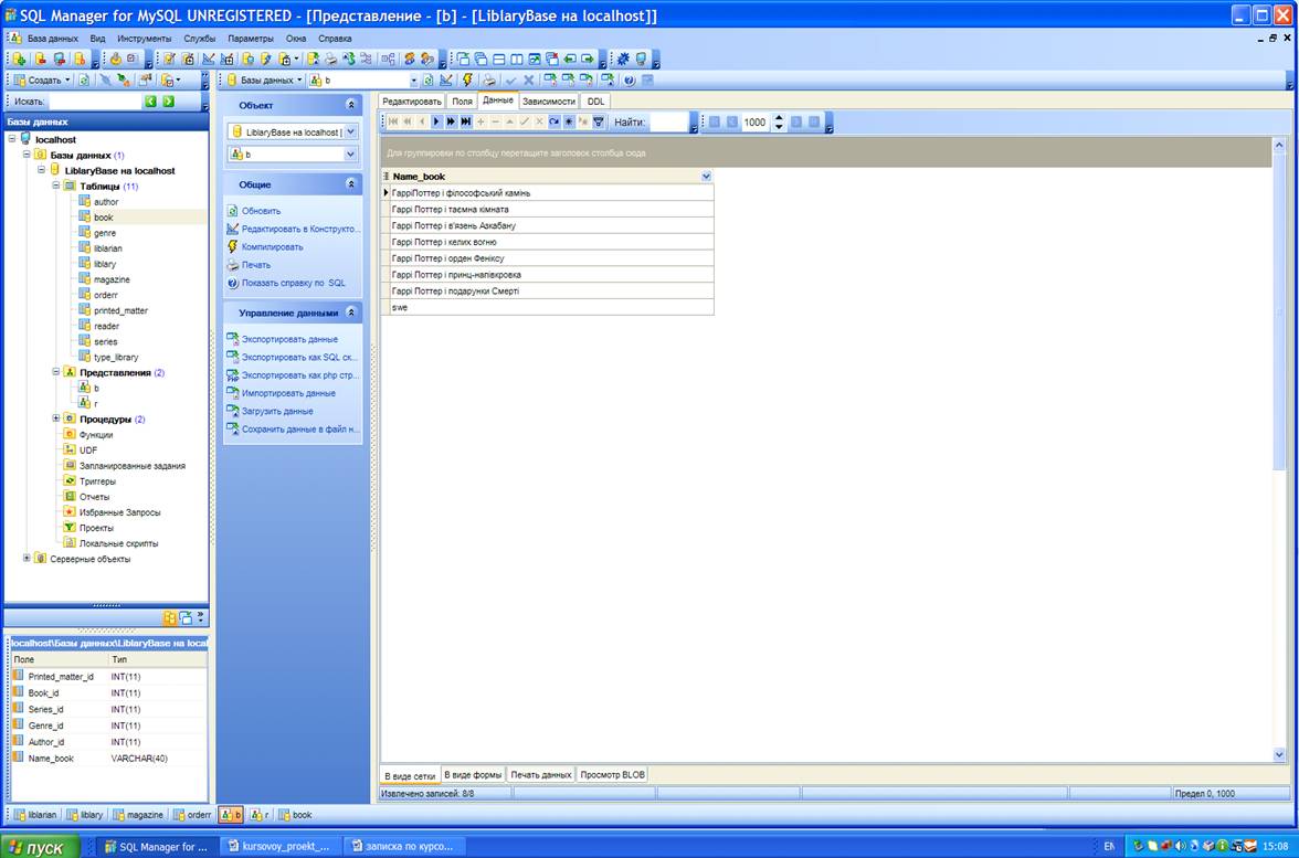 "Book" з порожнім полем Name_book, що можна побачити на рисунку