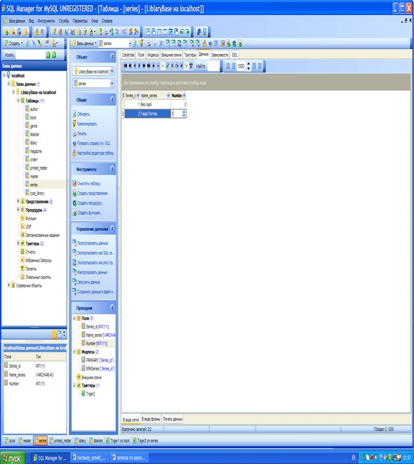 таблиці "Series" був розроблений тригер - "Triger2". Дія