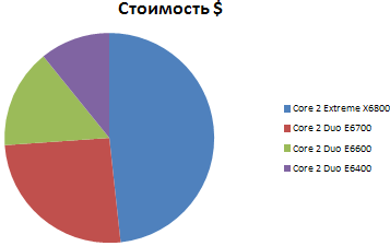 по тактовой частоте (рис.6) так и по цене (рис.7). Кстати Core 2 Extreme X6800