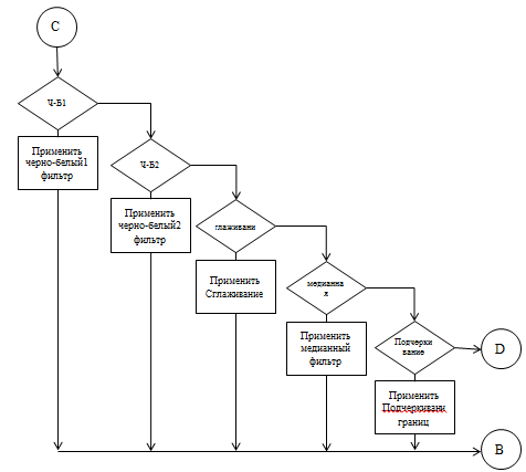 изображения: черно-белый фильтр, сглаживающий фильтр, подчеркивание границ и