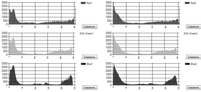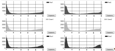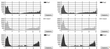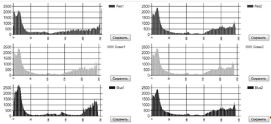 Например, при применении черно-белого фильтра, гистограммы для каждого из