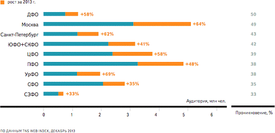 Развитие Интернета в регионах России определяет несколько взаимосвязанных