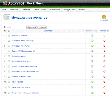 Разработка Web-приложения на CMS Joomla 'Рок-музыка'