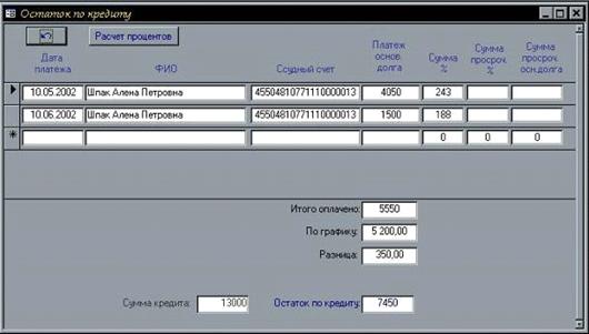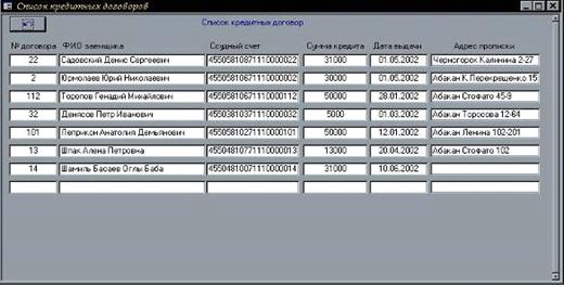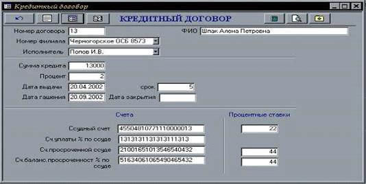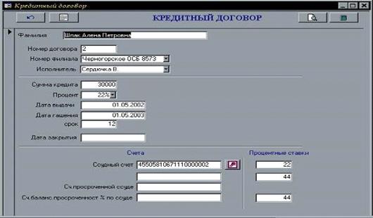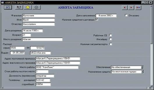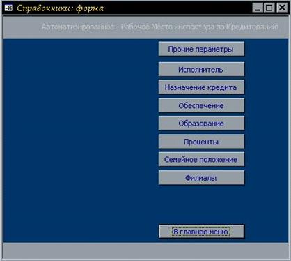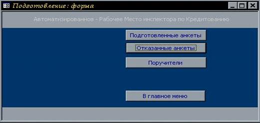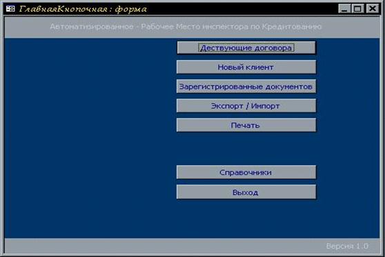 инспектора по кредитованию использован программный продукт фирмы Microsoft Access2000, как RAD-направленная СУБД. Он