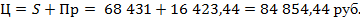 .9 Расчет цены