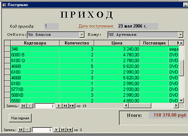 выполняемыми функциями программа включает еще 2 модуля: «Продажа товара» и