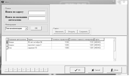 Рисунок 4.7. - Форма "Автосалон" с картой