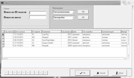 следующих данных: заказ клиента и поставщик автомобилей. В результате на выходе