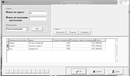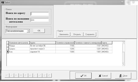 Рисунок 4.6. - Поиск данных по названию автосалона