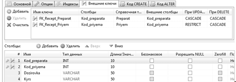 · ПРИЕМ ( код приема, код доктора, код пациента, код рецепта,