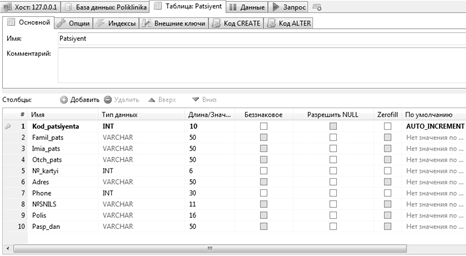 Разработка базы данных ' Учет, регистрация пациентов и приемов