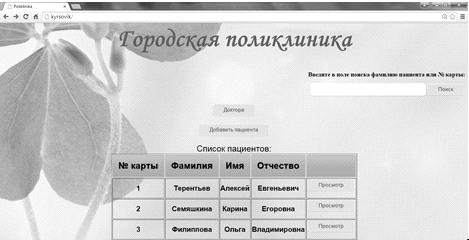 пациентов и приемов" заключает в себе процесс регистрации пациентов,