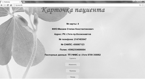 карточка пациента и записываются его личные данные (Ф.И.О., № медицинской