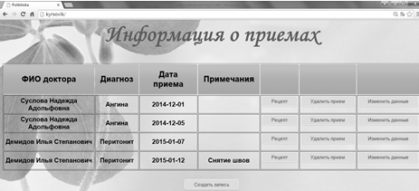 пациентов и приемов, и сократить время для поиска данных.