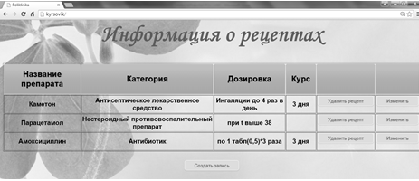 выписанные лекарства заносятся в карточку пациента. На основании исследования